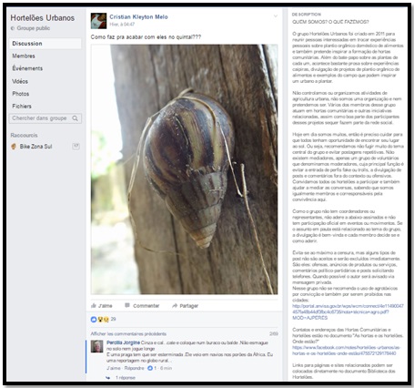6. Un jardinier demande des consignes pour faire partir des escargots de son potager (Horteloes urbanos, 2017).