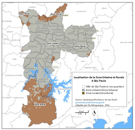 8. Localisation de la production à São Paulo aux extrémités de la ville (régions Sud, Nord et Est) (Adaptée par De Albuquerque, 2017).