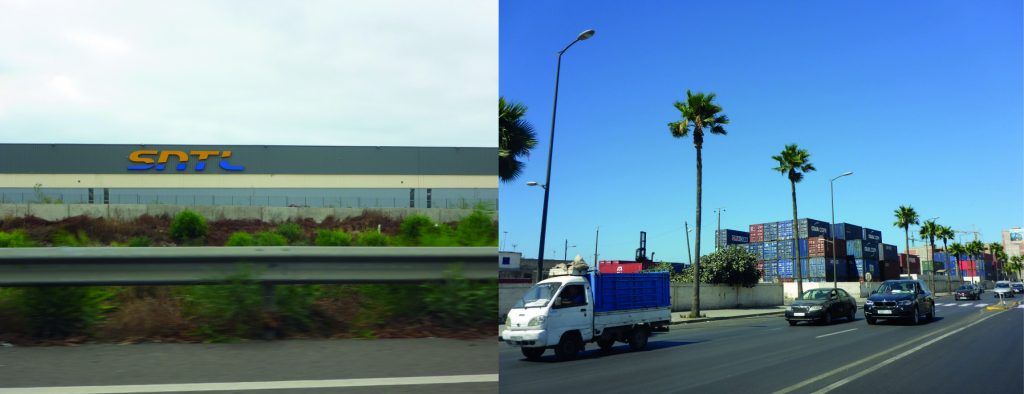 3. Entrepôts SNTL le long de l’autoroute (à g.) et zone de stockage du terminal à conteneurs du Port de Casablanca (à d.) (N. Mareï, juillet 2017)