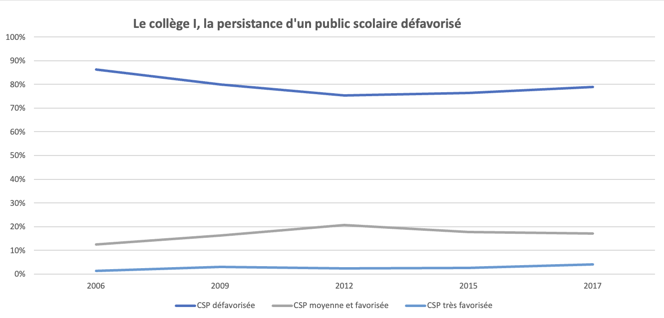 3. Le collège I, la persistance d’un public scolaire défavorisé (A.-L. Gervais, 2021, données rectorat d’Aix-Marseille)