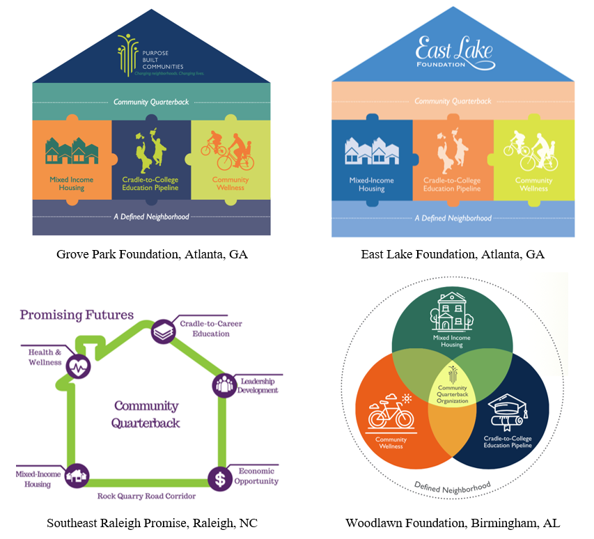 4. Schémas de quatre organisations du réseau Purpose Built Communities