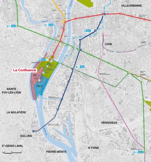 4. Localisation de la Confluence au sein de la Métropole de Lyon (Lyon Confluence Images et plans – 68 repères, SPLA Lyon Confluence, Grand Lyon 2013)