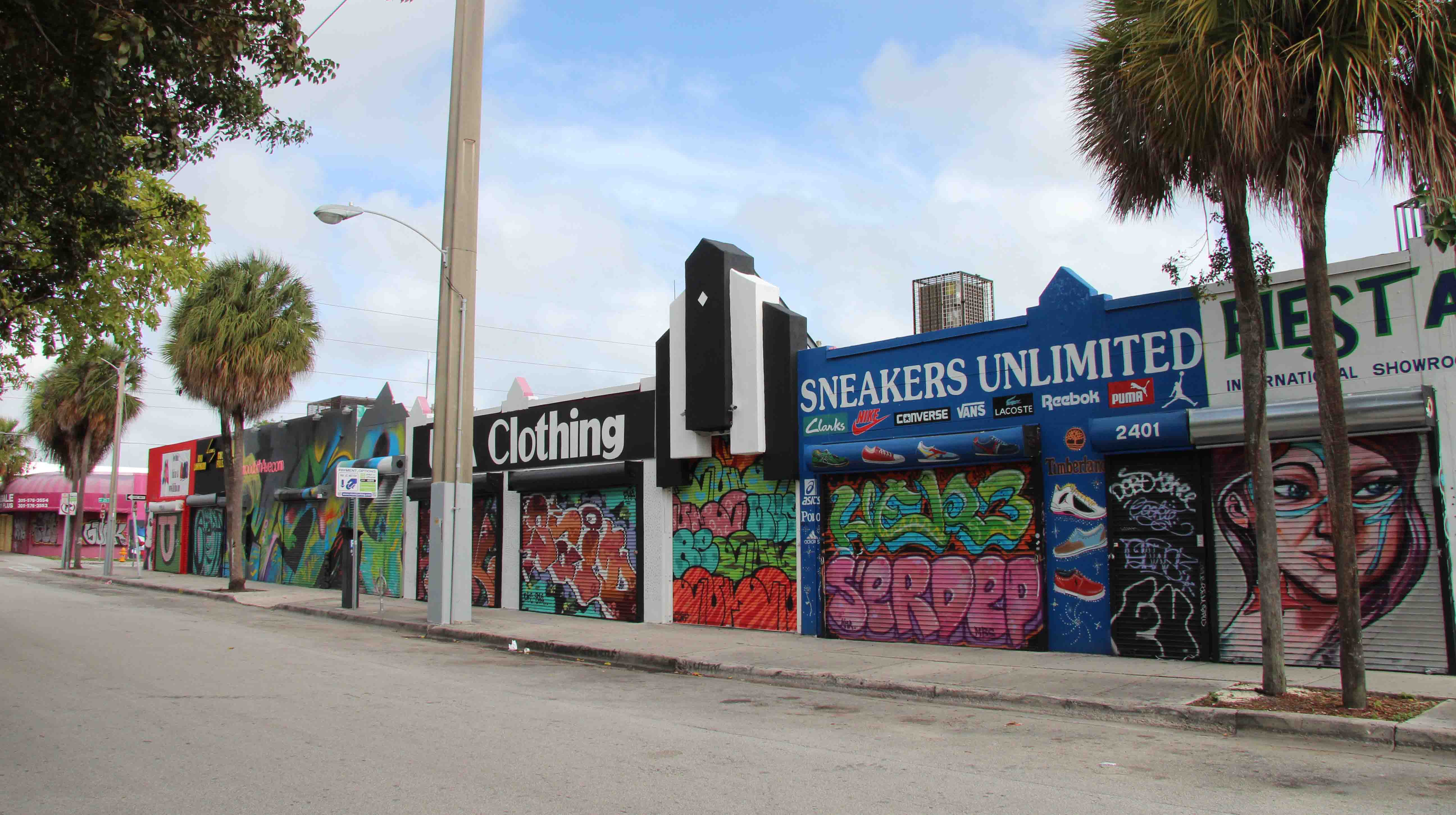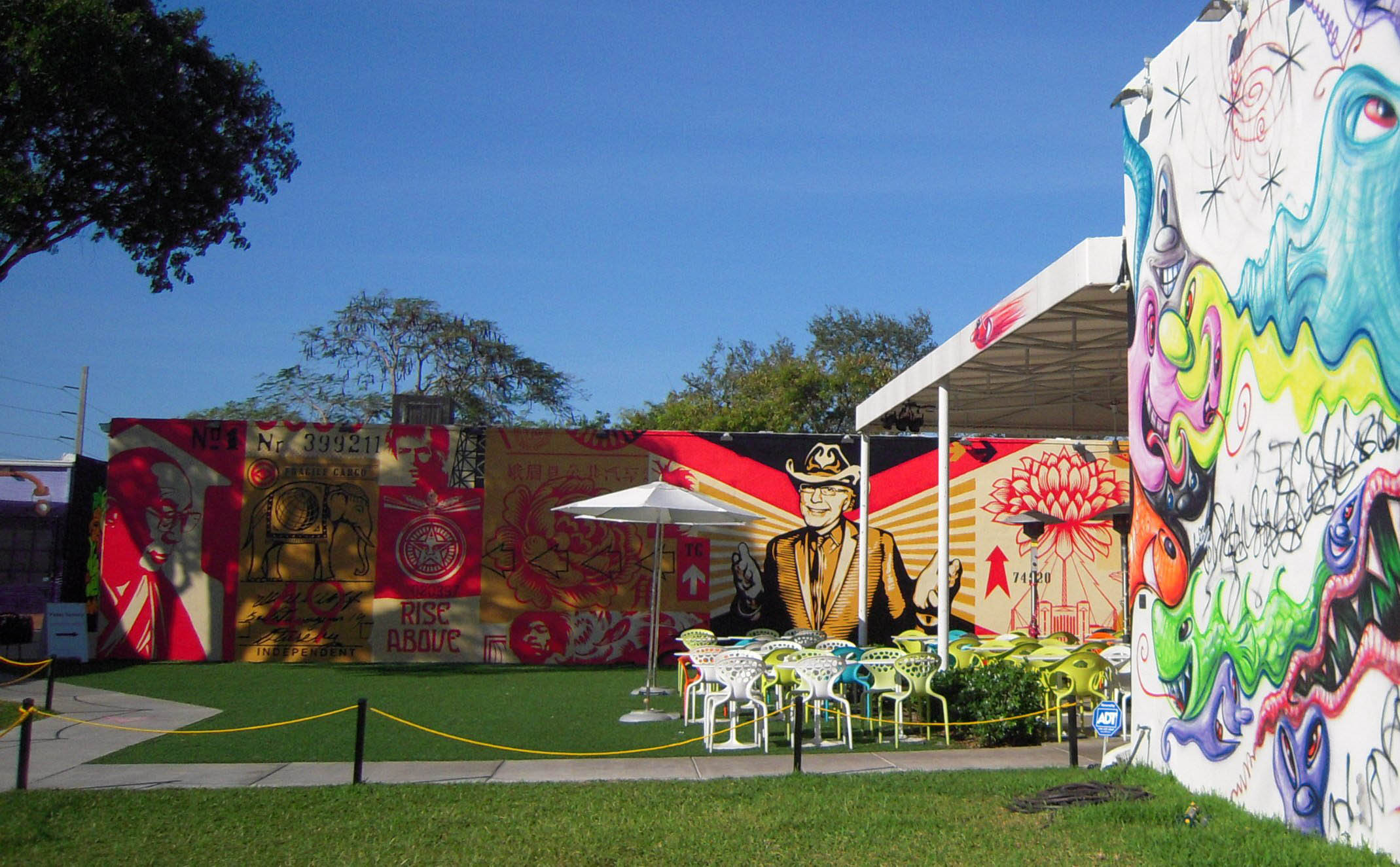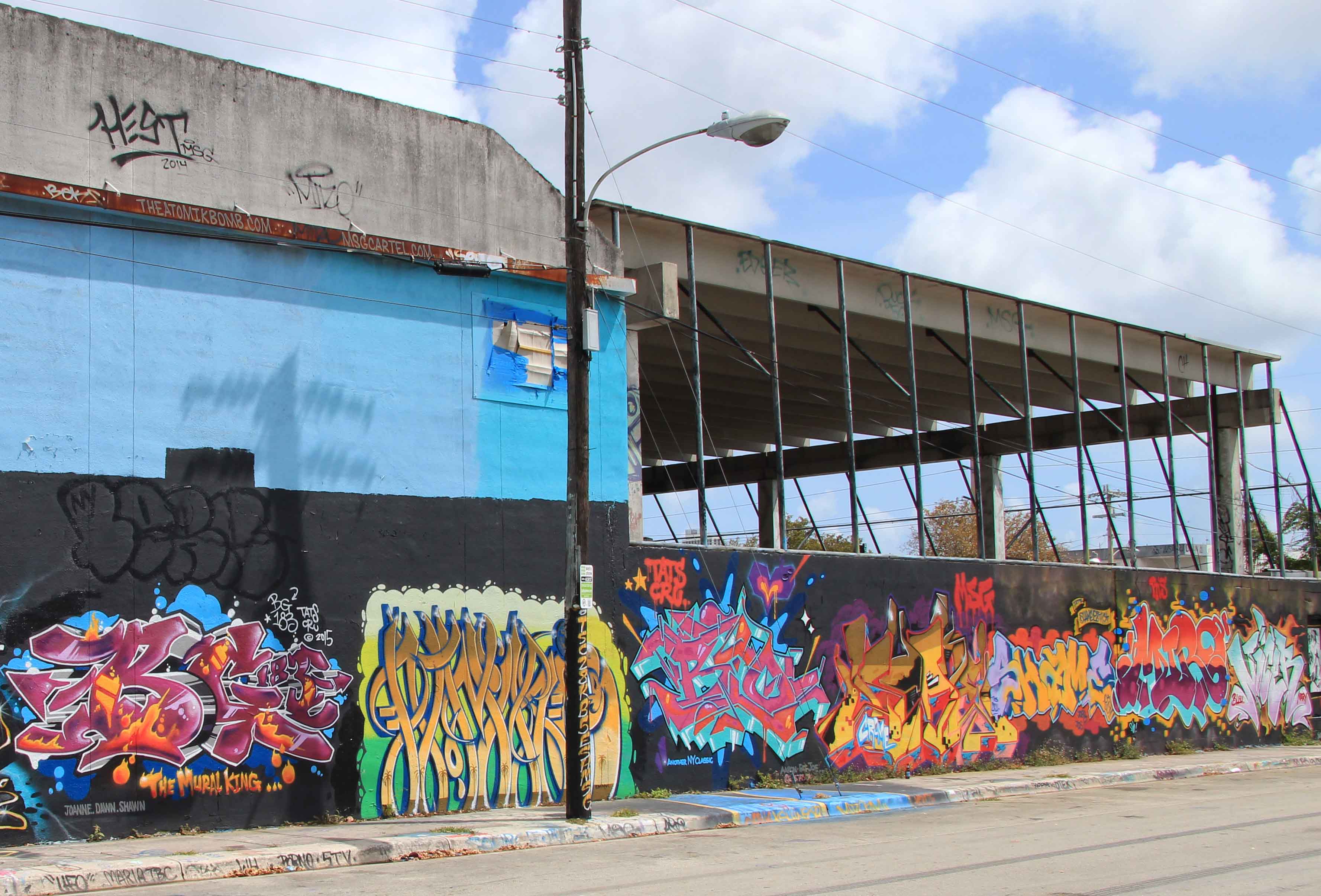 Wynwood se situe au nord de Miami, à quelques encablures des plages et des hôtels de South Beach, prisés des « Spring Breakers », étudiants qui viennent y faire la fête à outrance entre deux semestres de cours. C’est un ancien quartier industriel : les industries agro-alimentaires des années 1920 (une emblématique boulangerie, une usine Coca Cola) ont cédé la place aux manufactures textiles, elles-mêmes ensuite remplacées par des entrepôts et des magasins de gros spécialisés dans le vêtement, ce qui valut au secteur le surnom de « Garment District ». Wynwood est traditionnellement un quartier d’immigrés d’origine latino-américaine, notamment cubaine et portoricaine, d’où l’appellation de Little San Juan.