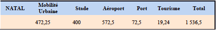 Brésil, Natal – investissements (en R$ millions) par type d’infrastructure