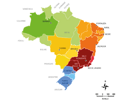 élaborée par Aiade Guerra (étudiante en architecture) à partir des donnés de l´IBGE (Institut Brésilien de Géographie et Statistiques) et de la carte publiée dans le site : http://www.and.org.br/associados/)
