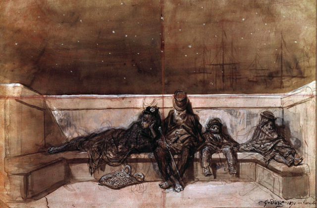 Gustave Doré, A Couple and Two Children Sleeping on a London Bridge, 1871