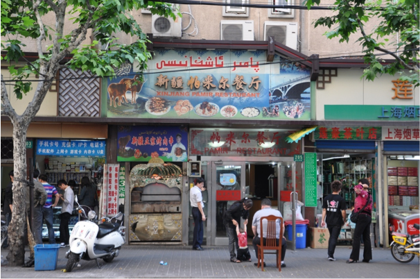 Ensuite, le secteur de la mode est représenté dans presque toutes ses déclinaisons grâce à l’activité de plusieurs milliers d’enseignes, avec des clusters assez distincts en fonction des quartiers. Cela fait de l’habillement une mesure pertinente de l’ouverture de la ville à l’altérité. À Omotesandō, le tissu commercial se décompose en deux types : sur et autour de l’avenue se succèdent des chaînes de fast retailing (Zara) et des enseignes de luxe (fig.6), dont beaucoup appartiennent au groupe LVMH. S’y ajoutent des marques japonaises (Comme des Garçons, Issey Miyake), des lieux de restauration et des boutiques de souvenirs où les menus et les nomenclatures sont traduits, ce qui éclaire sur les tailles proposées et leurs équivalences d’une région à une autre.