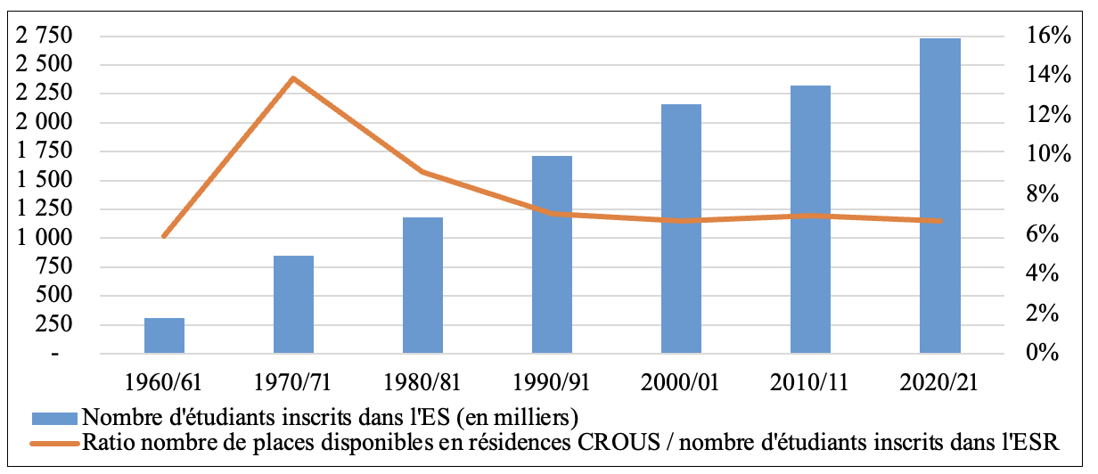 L’évolution du déséquilibre entre le nombre d’étudiants en France depuis 1960 et les besoins en logements
