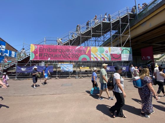 Couverture : Banderole de la candidature rouennaise à Capitale Européenne de la Culture enjoignant les visiteurs de l’Armada à « Embarquer vers Rouen 2028 » (Cristina Sanchez-Algarra, Juin 2023)