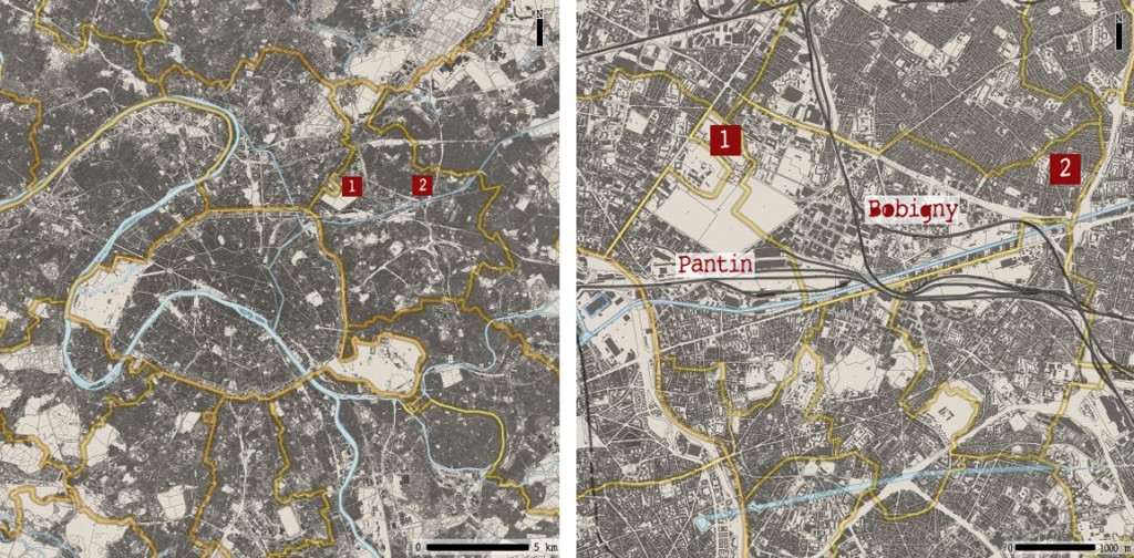 L’article, dans une première partie, retracera l’historique des modes d’habiter des années 1950 dans deux quartiers conçus par l’architecte Émile Aillaud : le premier est la cité des Courtilières à Pantin retenu en 2003 pour les PNRU (n°1 sur le plan) ; le deuxième est la cité de l’Abreuvoir à Bobigny retenu en 2014 pour les NPNRU (n°2 sur le plan). Une deuxième partie s’intéressera aux différentes formes de projets, un rappel des années 1980 introduisant l’idée du « Projet Urbain » (Guillot, 2009) et une analyse des processus de préparation d’un dossier ANRU.