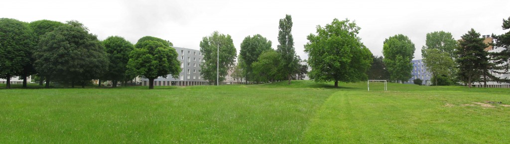 L’architecte des Bâtiments de France de la Seine-Saint-Denis de l’époque, Bruno Mengoli, a eu un rôle important dans ce processus. Il compare les pertes de cette architecture avec la perte de la halle de Baltard lorsqu’il y a eu un moment de sensibilisation à l’architecture du XIXe siècle. « Il y a eu un effet générationnel autour de la valeur des grands ensembles depuis les années 60, jusqu’à l’ANRU. En tout cas, il faut les regarder du point de vue de leur valeur qu’à mon sens, il ne faut ni sous évaluer ni sur évaluer. Les démolitions ont forcé l’entrée des grands ensembles dans le champ patrimonial » (ABF, entretien, 2013). De son point de vue, il a réussi à arrêter le projet mais il fallait trouver les arguments pour justifier l’intérêt du site. Dans ce sens, le quartier a reçu le label « Patrimoine du XXe siècle » par le biais de la DRAC d’Île-de-France en 2008, comme le quartier de l’Abreuvoir. Un statut sans aucune valeur juridique peu connu des habitants, mais qui permet une certaine reconnaissance au niveau institutionnel.