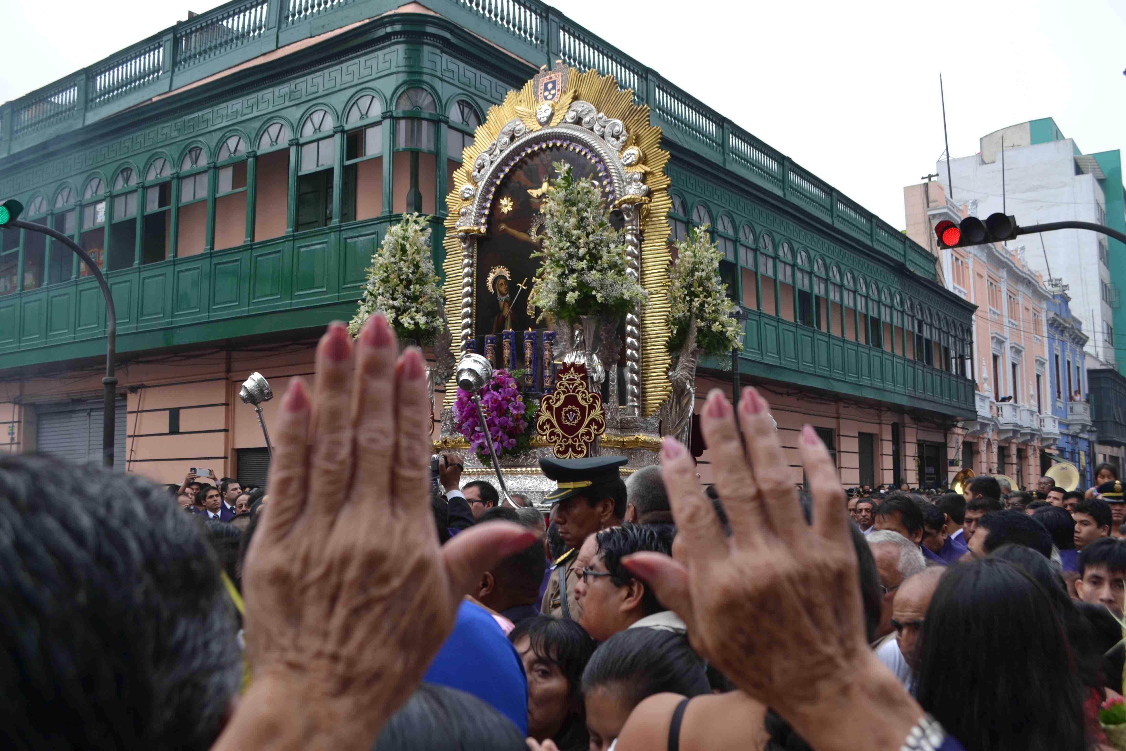 Figure 10. Procession du Christ des Miracles organisée par la confrérie du Seigneur des Miracles de l’Eglise des Nazarenas (HSMN) (Sierra, 2013).