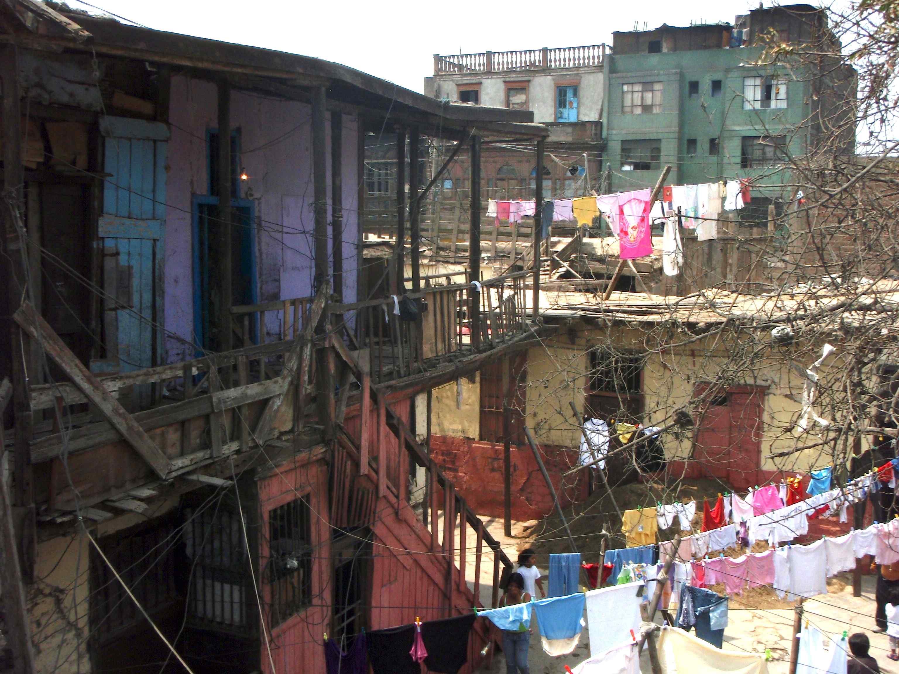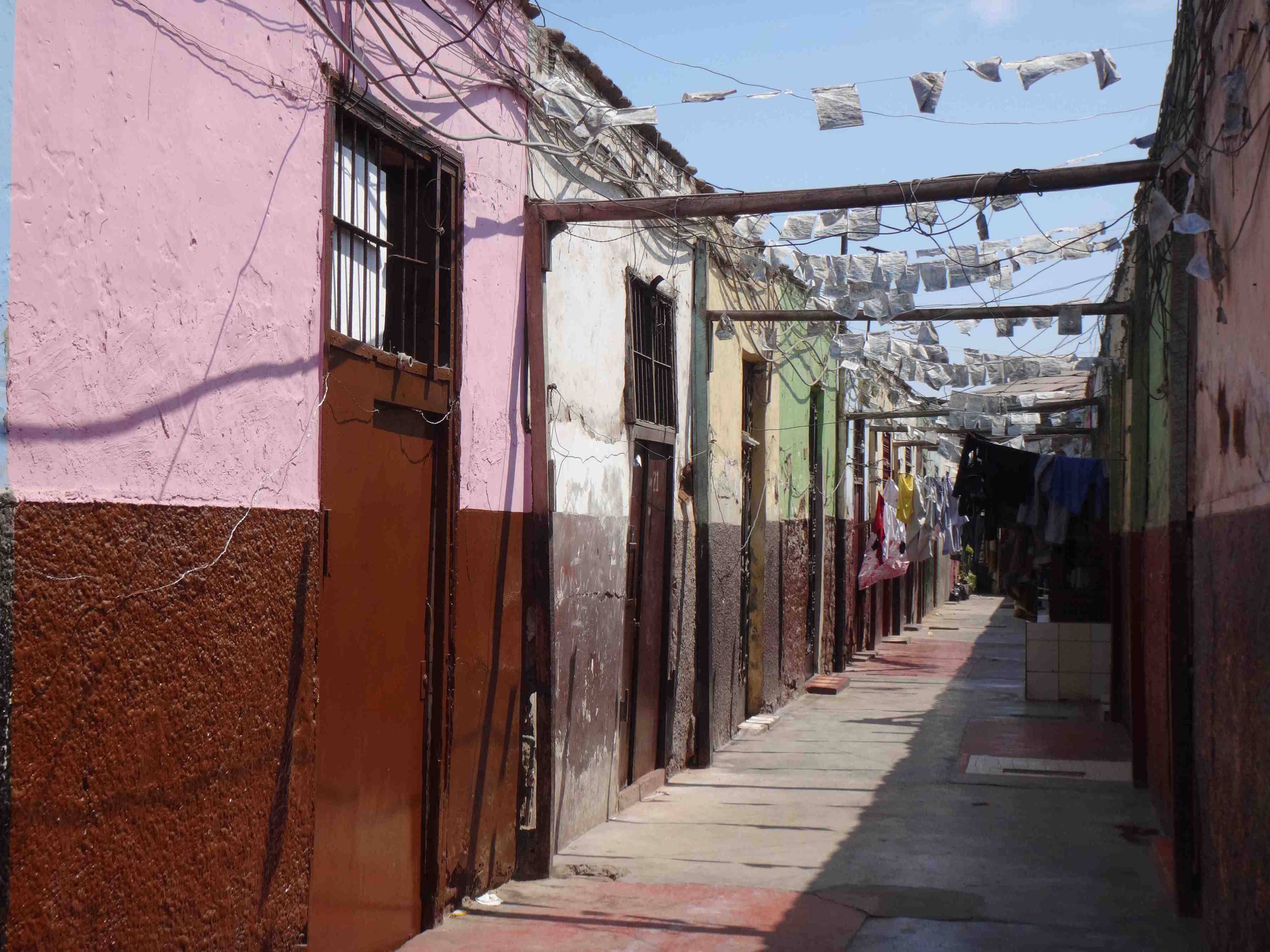 « La masse populaire s’entasse dans trois espèces d’horreur : le callejón, long passage de taudis miséreux, la barriada, quartier clandestin et spontané de cabanes de nattes et de cahutes de pisé et de brique, et le corralón, ensemble de logements rustiques dans des terrains voisins [de la ville]. »