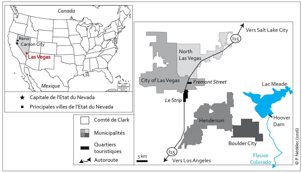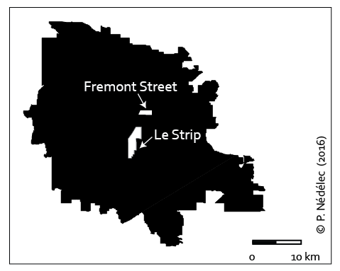 Nédélec P., 2012, « L’enclave fonctionnelle du Strip à Las Vegas : quand l’insularité façonne la ville », Espaces et Sociétés, n°150, 49-65.
