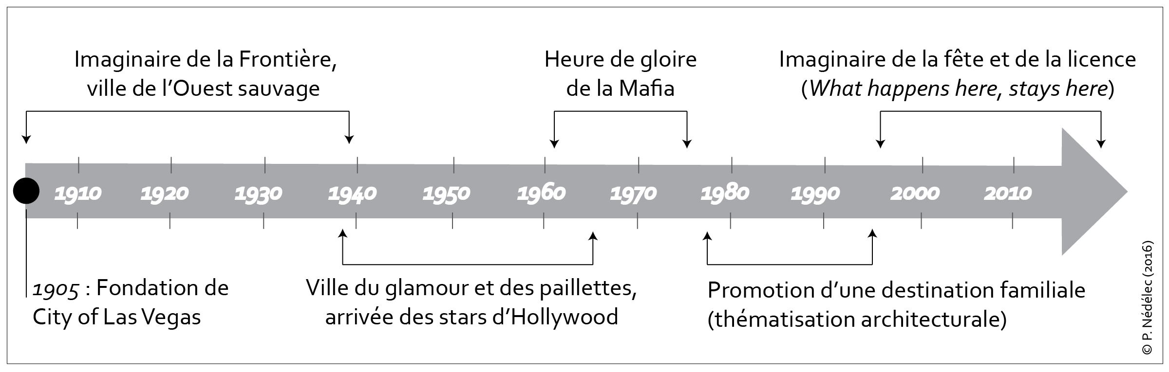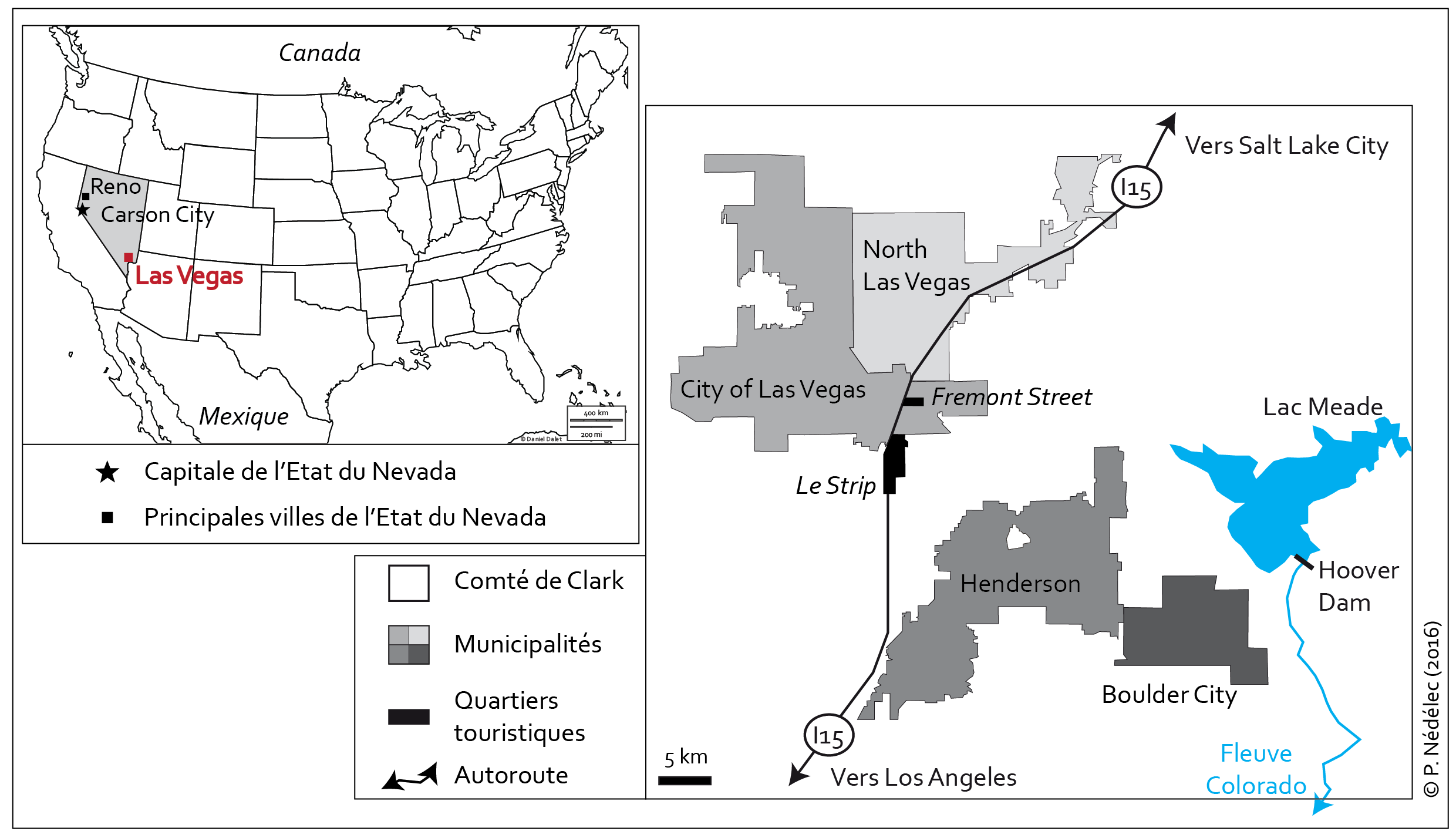 Nédélec P., 2013, Réflexions sur l’urbanité et la citadinité d’une aire urbaine américaine: (dé)construire Las Vegas, thèse de doctorat en géographie, Université Lyon 2.