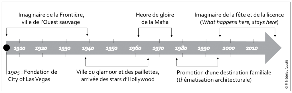 En un peu plus d’un siècle d’existence, la promotion de Las Vegas s’est appuyée sur une succession d’imaginaires touristiques, initiée dès les années 1920 (Gragg, 2013) par la Chambre de commerce locale, puis par des institutions entièrement consacrées au développement du tourisme. Depuis 1955, la Las Vegas Convention and Visitors Authority (LVCVA), fruit d’un partenariat public-privé, a pour mission « d’attirer des visiteurs en faisant la promotion de Las Vegas dans le monde comme la destination la plus désirable pour les loisirs comme pour les affaires ».