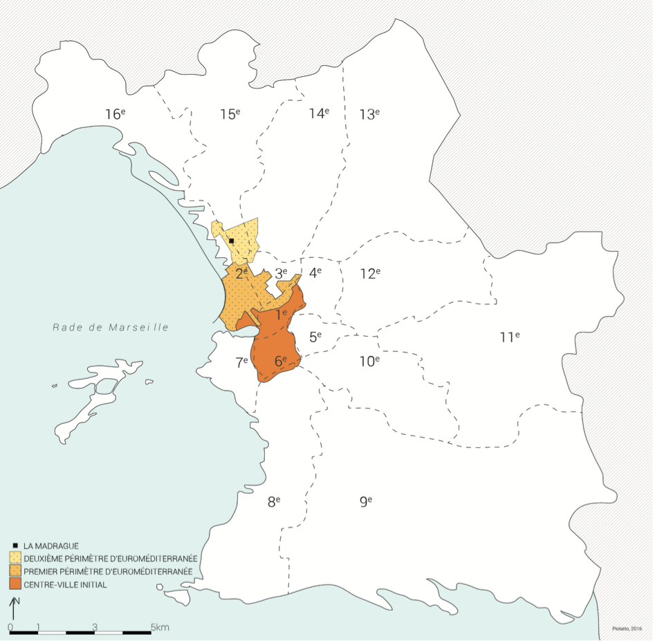 La même année, l’Opération d’Intérêt National (OIN) Euroméditerranée est lancée. Depuis 1995, elle est menée dans l’objectif de redorer l’image de Marseille pour l’intégrer dans le réseau des métropoles européennes et méditerranéennes. Sur 480 hectares, Euroméditerranée se présente comme un « créateur de développement économique, social et culturel (…), un accélérateur de l’attractivité et du rayonnement de la métropole marseillaise ». Les autorités marseillaises souhaitent que la ville retrouve une place dans le monde, à l’image du carrefour qu’elle était au XIXe siècle (Bechini, 2014), notamment en développant ses activités portuaires de croisière de luxe. Avec la sélection de Marseille comme capitale européenne de la culture en 2013 et l’avancée des travaux de requalification du front de mer, les médias orientent davantage leurs articles sur la politique culturelle et l’attractivité que sur la criminalité qui a forgé une solide réputation de ville dangereuse (Mondou, 2014).