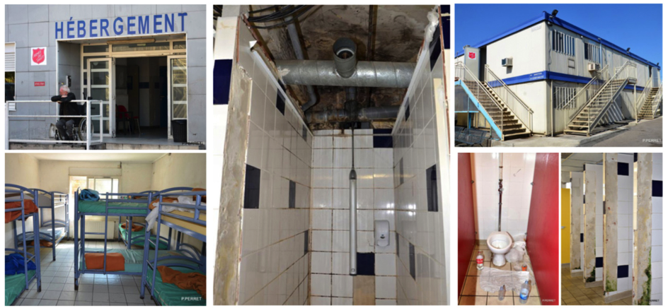En effet, depuis la suppression du délit de vagabondage dans le Code pénal en 1994, certaines personnes sans-abri préfèrent dormir à la rue plutôt qu’à la Madrague, conscientes de l’insalubrité et de la dangerosité du site dues à la précarité de l’accueil. Ces éléments participent à la décision de non-recours à ce service, et ce malgré sa gratuité. Nombreux y sont réticents, craignant aussi d’y être agressés, volés ou violés. Passer la nuit en hébergement d’urgence, à la Madrague comme dans d’autres structures, fait alors partie des épreuves de survie pour les personnes sans-abri (Soulié, 2000 ; Bruneteaux, 2006). La Madrague est-elle en mesure d’assurer une offre en accord avec la dignité humaine ? Comme le montrent les photos du diagnostic de fonctionnement établi par Panama Conseil pour la Fondation de l’Armée du Salut en 2011, les conditions d’hygiène minimale ne sont pas respectées et la structure expose ses usagers à des risques manifestes qui peuvent porter atteinte à leur sécurité physique ou à leur santé. En imposant des conditions d’habitat indigne, les structures appuient le décalage entre l’image commune de l’hébergement d’urgence comme solution bienveillante proposée aux personnes sans-abri et la réalité de l’accueil, justifiée a priori par le caractère temporaire de prise en charge.