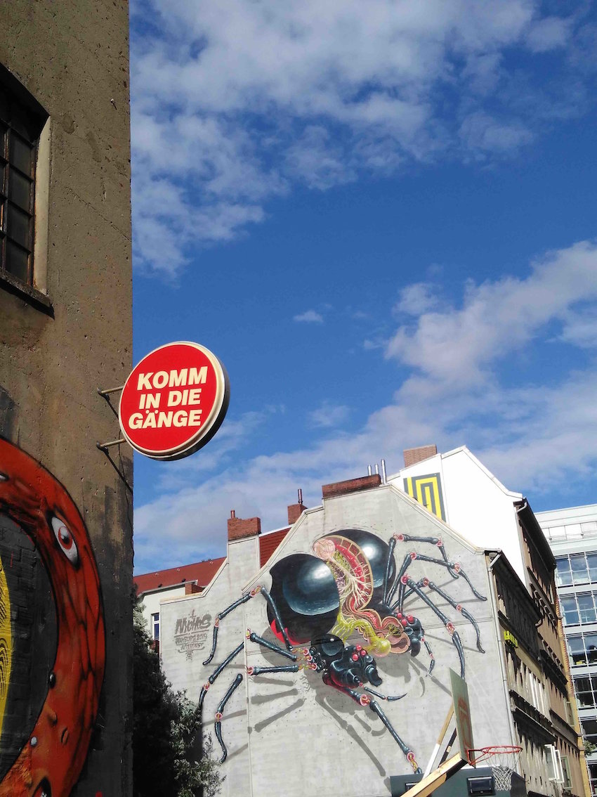 9. Fresque du Gängeviertel à Hambourg, quartier historique menacé de destruction et sauvé par un collectif d’artistes urbains avec le soutien de la ville. Flâner en se rendant d’une murale à l’autre permet d’appréhender et parcourir le quartier. (Sallenave, juillet 2016).