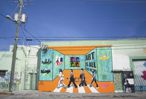 « Art is all you need » proclame ce mur à Wynwood (Miami, États-Unis), un quartier d’entrepôts et de marchands de gros en pleine mutation vers une fonction récréative par le biais de l’art. « Art is all you need… for what ? » serait-on tenté d’ajouter. Dans le contexte d’énonciation de ce mural, on peut se demander si l’art – le street art en l’occurrence – peut suffire à la revalorisation d’un quartier industriel, à l’instar de ce que l’on observe avec la culture, officielle comme alternative, dans d’autres villes (Gravari-Barbas, Violier, 2003). Encore faut-il s’entendre sur le type de street art : certaines usines abandonnées et murs d’enceinte sont depuis longtemps ici un haut lieu de tags et de graffitis, connu dans le milieu underground local (Crook and Crome, MSG Cartel, Oscar « Trek 6 » Montes, Darin « Books IIII » Bishof, Michael « Typoe » Gran, entre autres). Mais ces pratiques graphiques informelles, apanage des espaces délaissés, marqueurs d’une forte appropriation territoriale locale, sont désormais concurrencées par des fresques murales gigantesques exécutées pour la plupart par des artistes étrangers en marge d’Art Basel Miami, version délocalisée de la célèbre foire internationale d’art contemporain suisse. Ces murals signalent la revalorisation symbolique et économique du lieu, devenu en quelques années seulement un quartier à la mode. Au-delà des balades entre les murals, c’est désormais une destination prisée aussi bien pour le brunch dominical que pour des soirées branchées entre galeries et restaurants cotés.