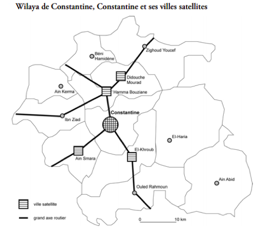 L’état de crise du tissu de la ville de Constantine, la situation de chaos spatial et fonctionnel dans lesquels elle se débat, les contraintes de la démographie galopante, de la migration intérieure, de la vétusté du bâti, des effondrements, des glissements de terrains, du manque de terrains urbanisables ont amené les pouvoirs publics à créer le groupement des communes de Constantine: El Khroub, Hamma Bouziane, Ain Smara, Didouche Mourad.