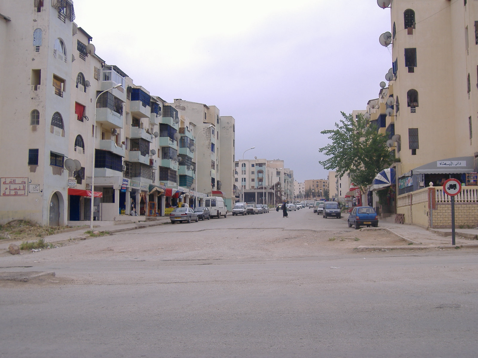 Alignés les uns à côté des autres, les immeubles présentent un aspect quelconque malgré le décor des façades, l’innovation dans l’architecture ayant été certainement absente durant la phase des études. On remarque cependant que les prescriptions contenues dans les plans d’aménagement de la ville sont, dans l’ensemble respectées : pas plus de six étages par immeuble. Cependant, le projet initial a subi une légère entorse. En effet, on remarque l’apparition de quelques tours, initiées par l’A.A.D.L (Agence Nationale de l’Amélioration et de Développement du Logement) et programmées dans le cadre de la formule « location-vente ».