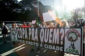 À partir de 2011, les travaux urbains dans les principales villes brésiliennes s’accélèrent, mais en même temps, les effets de la crise économique et les impacts urbains et sociaux des évènements deviennent manifestes. Selon Raquel Rolnik, professeur à l´Université de São Paulo et rapporteur spécial au Conseil des Droits de l´homme de l’ONU pour le droit au logement et à la ville, dans le cadre de la mise en œuvre des projets urbains liés à la Coupe du Monde, il y a eu des atteintes aux droits de l’homme, des interventions violentes de la police et des agents de l’ordre, notamment lors des expulsions de familles. Des milliers de maisons furent détruites pour laisser place aux grands projets urbains et à la construction des nouveaux stades et la restructuration urbaine de leurs environs. Des manifestations et des formes de résistances s’organisèrent.