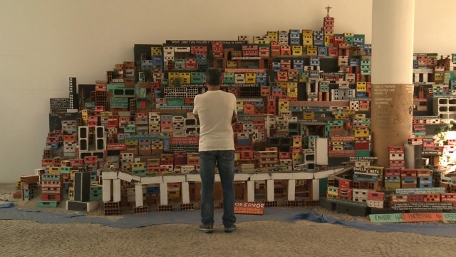 Image de couverture : l’image est tirée du deuxième épisode de Bons baisers de Rio. Il s’agit d’une œuvre qui représente une favela type, fabriquée de briques. Elle a été filmée au MAR (Musée d’Art de Rio) en mai 2014.
