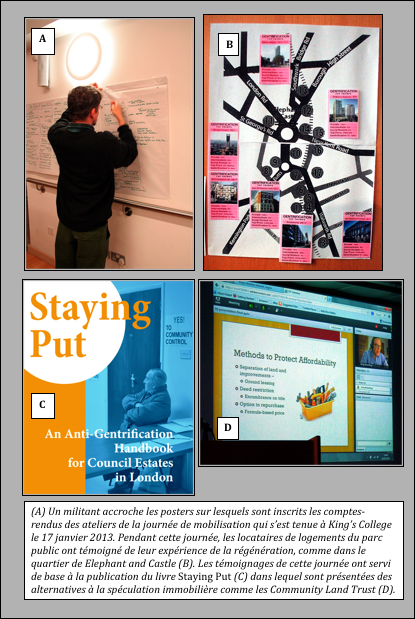 Ils le font en créant des associations, en participant à des réunions publiques, en faisant valoir leurs droits par des actions juridiques. Au départ les actions étaient très dépendantes de la forme des projets urbains. C’est contre des projets spécifiques que se tenaient les mobilisations. Elles étaient très fragmentées, sans montée en généralité, sans discours unifié contre la régénération urbaine. Mais au cours de mon travail de terrain, j’ai observé la mise en place d’un discours plus général et la constitution d’une association de fédération de toutes les associations luttant contre les effets négatifs de la régénération urbaine, Just Space.