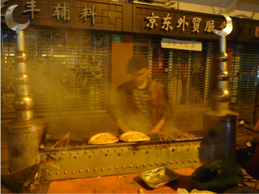 Les années 1980 et l’assouplissement des politiques migratoires internes en ont fait des membres à part entière du paysage urbain des villes côtières chinoises: tantôt béret tantôt kufi sur la tête, ils font griller des brochettes de mouton, souvent accompagnées de Nan – galettes de pain parfumées au cumin – sur des barbecues en alliage ornés parfois d’un croissant de lune. Un transistor fait résonner les incantations traditionnelles d’un Muqam, la guitare flamenco d’un Shirali, les doux violons d’un Mominjan ou les basses sonores d’une pin-up ouzbek. Eux sont Ouighours : jeunes hommes d’une vingtaine d’années parlant un mandarin souvent inégal, ils viennent en grande partie de zones urbaines pauvres de la Région Autonome du Xinjiang, province occidentale turcophone de la Chine représentant plus d’un sixième de sa superficie totale et principalement composée de régions désertiques et de montagnes. Et si l’on parle le plus souvent de l’ampleur des migrations des Chinois de l’ « ethnie » (Minzu 民族) majoritaire Han vers le Xinjiang, où ces derniers bénéficient de politiques encourageantes en termes d’accès à l’emploi et aux postes de gouvernance, on oublie souvent le contre-point inverse de ces mouvements : les départs de Ouighours – et Ouzbeks, Kazakhs, Hui et Kirghizes qui peuplent aussi la région – vers l’intérieur du pays, le neidi 内地, à la recherche de nouvelles opportunités d’emploi.