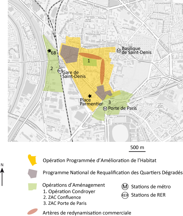 Dans le quartier Porte de Paris-Stade de France, l’implication des classes moyennes dans le dispositif local de démocratie participative, la démarche-quartier, leur a permis de s’approprier une petite place, la Place Parmentier (cf. carte).