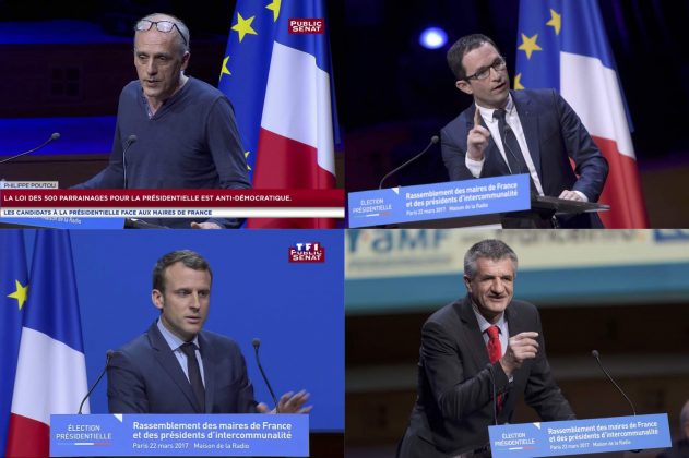 Photographie de couverture : Quatre candidats à la présidentielle s’exprimant devant les maires et présidents d’intercommunalité, le 22 mars 2017 à Paris (LCP / Public Sénat, 2017 ; France TV Info, 2017 ; LCP / Public Sénat, 2017 ; Witt / SIPA, 2017).