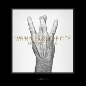 JR s’était déjà adonné à décorer de photos les murs de la cité des Bosquets (projet Portrait d’une génération), à couvrir « le mur de la honte » séparant Israël de la Palestine de sourires (projet Face2Face), ou à rendre hommage dans différentes villes du monde à des femmes victimes de guerres, de viols, d’oppression (projet Women are heroes). Avec Wrinkles of the City : des rides et des villes, projet commencé il y a huit ans, JR continue ses tours du monde, en collant aux murs de six villes aux passés tumultueux les visages des personnes aujourd’hui âgées ayant fait l’expérience de ces tourments historiques récents. L’entreprise part d’un parti pris : celui de la continuité entre les rides des Hommes et les fissures des murs. Les espaces urbains pourraient dès lors se lire à la manière d’une voyante scrutant les plis d’une main, les ridules d’un visage, les émotions reflétées dans une rétine. À la manière d’une Agnès Varda – amie de longue date de JR, laquelle préface par ailleurs l’ouvrage – qui s’attachait dans son film Mur Murs (1981) à lire les liens entretenus par les murals de Los Angeles, ses peintres et ses publics, JR fait ici parler les murs. L’entreprise est ici quasi-anthropomorphique : l’humain accolé à la pierre ayant pour fonction de faire dialoguer des témoins.