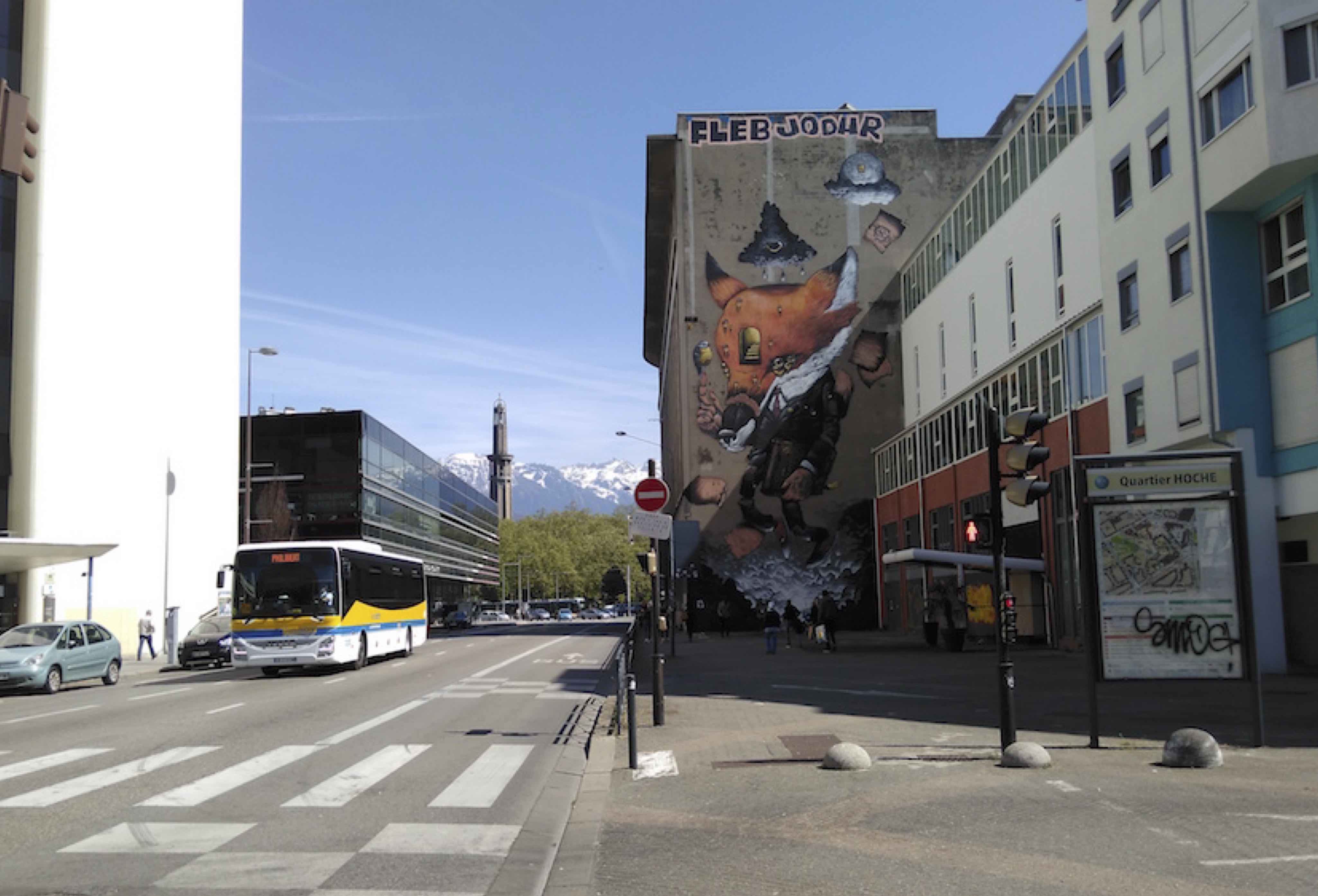 Toutefois, si la souffrance paraît au cœur des relations entre la ville et les vies qui l’habitent – la ville enfermant, tourmentant et souffrant parfois avec les individus – villes et visages dialoguent également parfois de manière apaisée, voire humoristique : des visages qui semblent contempler la ville d’un air serein ou nostalgique ; un portrait esseulé le sourire au coin, adossé sur un vieux mur entouré de résidences clinquantes ; des yeux qui semblent juger sévèrement le monde qui les entoure ; des photos qui semblent dialoguer avec les humains évoluant au sein du paysage. On découvre par exemple un vieil homme imprimé de la taille d’un immeuble qui se penche l’air amusé vers un passant l’observant de sa petite taille les yeux tournés vers le ciel ; le visage d’une vieille femme regardant attendri un enfant passant en courant devant elle ; un œil collé sur un immeuble devant de jeunes joueurs de football rappelant l’œil de l’Histoire surplombant les lieux… Le vieil âge est certes synonyme de bouleversements et d’histoires mouvementées, mais humour et tendresse ne sont pas absents, le dialogue entre les espaces et les générations laissant ici couler le temps de manière apaisée et suggérant une calme résignation face aux changements.
