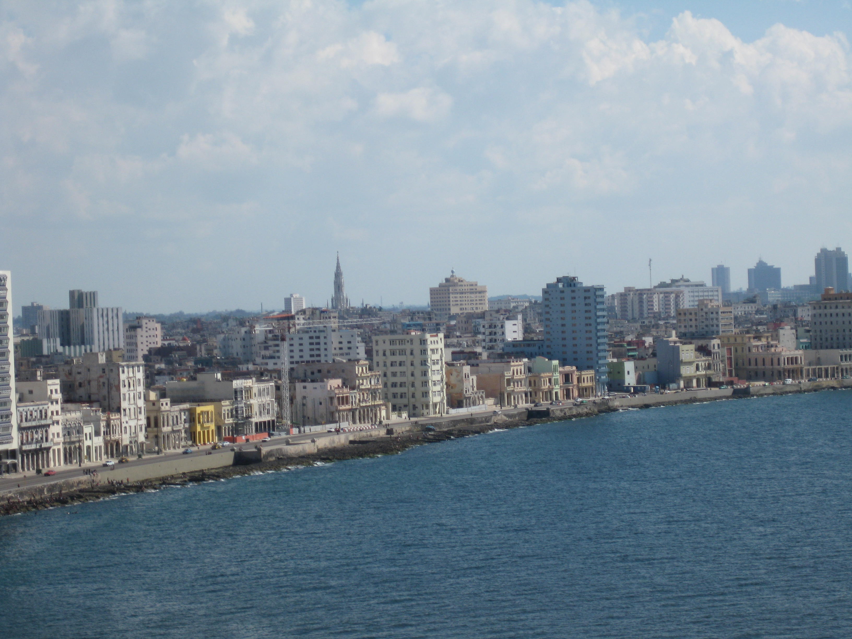 Vue de La Havane depuis le fort d’El Morro, juillet 2011 (photographie personnelle). Au premier plan, le Malecón.