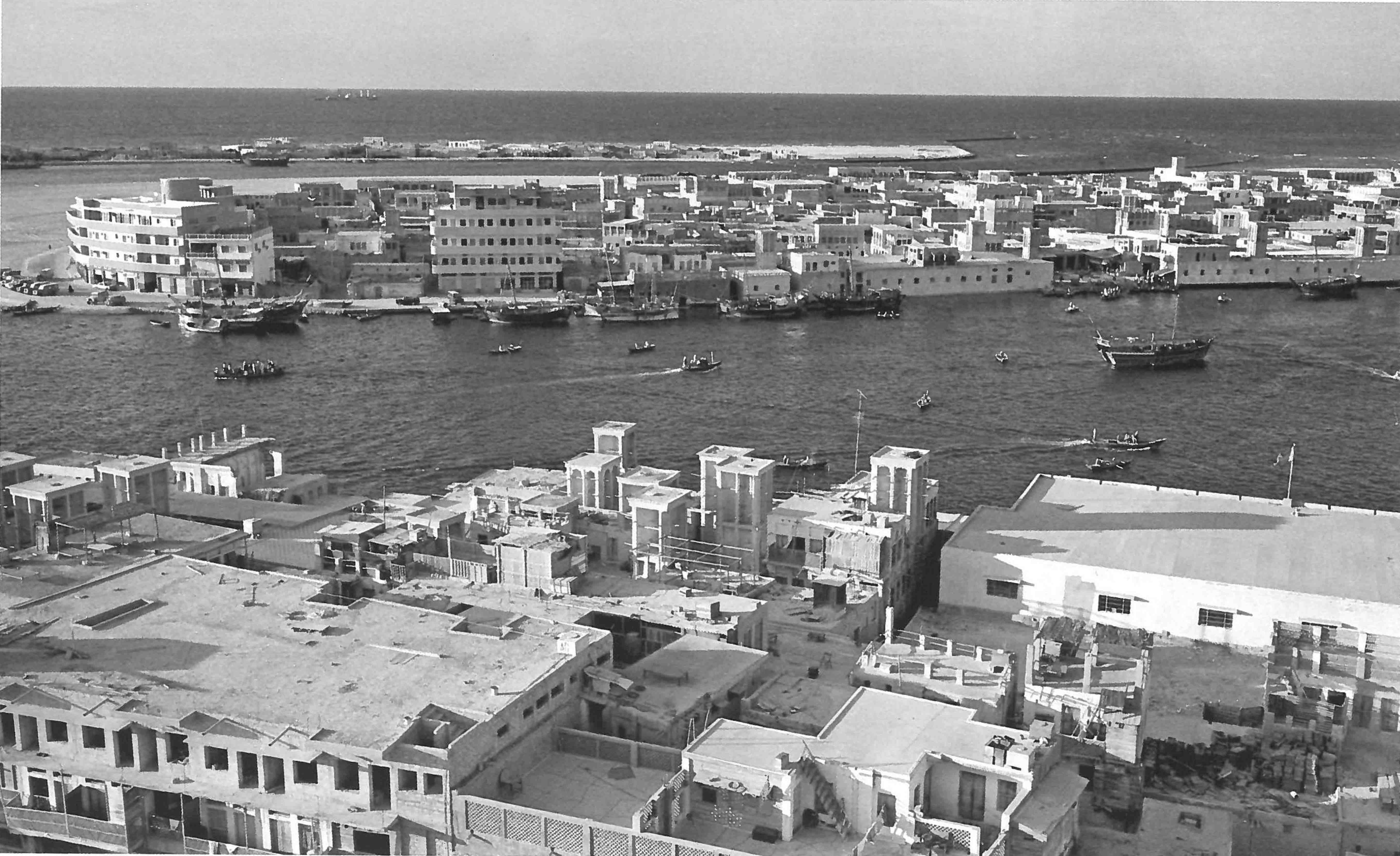 Le passage de la crique sur une abra entre Deira et Bur Dubaï, photographie de Yoshio Kawashima (Kawashima, Shimbun et Makishima-Akai, 1968)