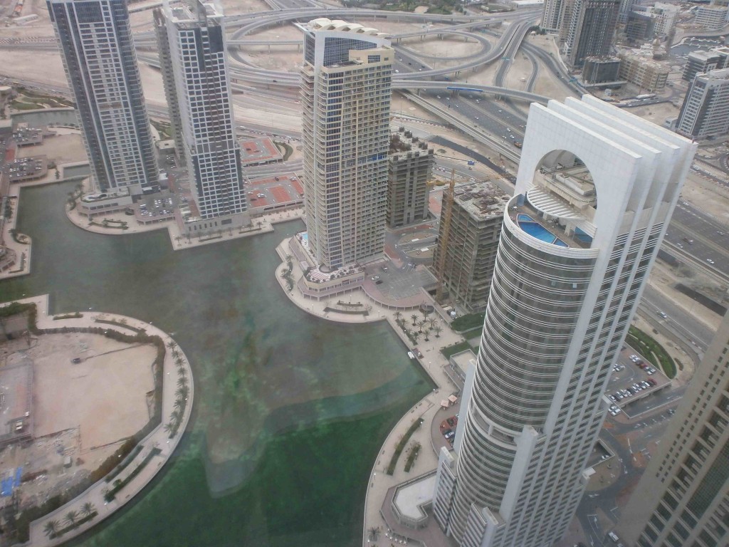 Une architecte-urbaniste, d’origine palestinienne, diplômée d’une grande université libanaise, responsable du suivi du chantier des tours de Jumeirah Lake Tower (JLT), décrit ainsi l’effet de la crise économique à Dubaï : « ce fut une légère baisse » tout à fait « normale » après un sommet de croissance. Elle explique que 80 % des tours de la zone franche JLT ont été construites, seules 10 tours sont inachevées et sont « à demi construites » et comme « nous ne voulons pas voir de parcelles vides » pas plus qu’avoir un « site visuellement dégradé », « nous recherchons des investisseurs pour reprendre les contrats ». Elle affirme que ce n’est qu’une question de semaines avant de finaliser les nouveaux contrats, « tout le monde veut venir à Dubaï » (entretien, avril 2013). Elle pose la supériorité de Dubaï par rapport à d’autres villes qui auraient connu cette crise en se fondant sur l’image et le bon état des infrastructures existantes, thèse qui est contestée parfois avec amertume sur le forum internet par les locataires des appartements des quartiers de Discovery Gardens, de International City ou encore par ceux de Jumeirah Beach Road (Bouchareb, 2012) dont l’enfer du quotidien dans ces tours mal conçues fait écho à I.G.H. de J.G. Ballard (1975).