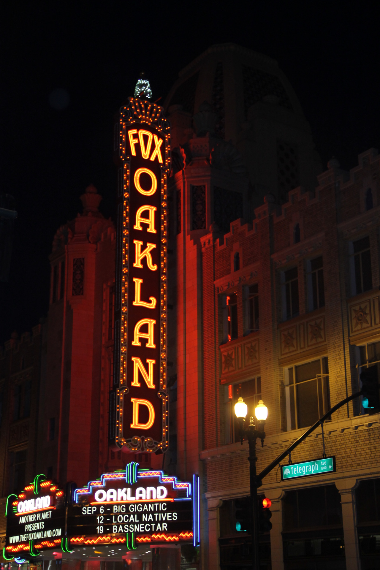 Tout d’abord, il est difficile d’ignorer l’émergence d’une image attractive de la ville d’Oakland ces dix dernières années. Le « 10K Plan » s’est ainsi accompagné d’une série de projets en vue de ranimer la vie nocturne de downtown Oakland. À cet effet, le zonage des documents de planification a été modifié pour changer la destination de nombreux immeubles de parkings et les transformer en bars ou en restaurants. En outre, plusieurs vestiges architecturaux laissés à l’abandon ont été réhabilités. On peut citer le cas du célèbre Fox Theater, ancienne salle de cinéma située sur l’artère centrale de Telegraph Avenue, splendide édifice inauguré en 1928 et inscrit au Registre National des Bâtiments Historiques, fermé dans les années 1960, menacé de démolition en 1975 (Bagwell, 1982) et restauré à partir de 1999 (coût total des opérations : 75 millions $). Réouvert en 2009, il accueille désormais une salle de concert de 2 800 places. La réouverture du Fox Theater symbolise à merveille l’ambition du « 10K Plan » de Brown, celle de redonner à Oakland son statut de haut-lieu de la vie culturelle et nocturne dans la Baie de San Francisco, et fait écho à d’autres cas classiques de flagship urbanism dans le reste du pays.