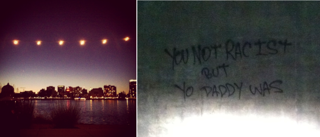 7. Bords de Lake Merritt, une destination nocturne animée au cœur de la ville – Tag sur un mur à proximité du lac (Maaoui, 2014)