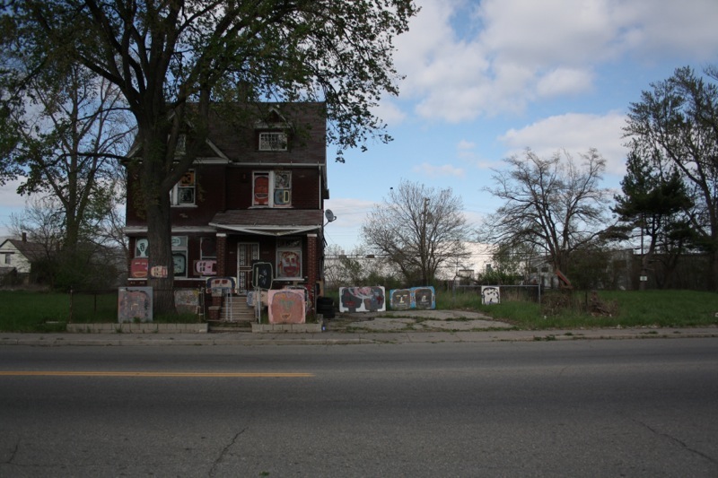 Ces photographies ne sont pas des objets esthétiques, elles reflètent le paysage quotidien de mon terrain de recherche à Detroit, en particulier dans l’East Side, un quartier durement touché par la détérioration de la ville1. En les réalisant au printemps 2012, j’ai essayé de me garder du ruin porn, cette fascination esthétique pour les bâtiments en ruine des villes en déclin. Il est vrai que la tentation de l’exploration des usines et des immeubles abandonnés est forte. Faire l’expérience de l’immense Packard Plant, totalement ravagée sur 300 000 m², est absolument inouï. Le moindre cliché photographique, tant la ville est presque partout dépeuplée et dévastée, flirte avec le ruin porn. Mais moins que la facilité de ces photos de ruines immobiles, le problème du ruin porn, c’est l’absence d’explicitation des mécanismes qui ont conduit à cet état, c’est le risque d’oblitération d’une réflexion systémique sur les problèmes, et de prise en compte de ceux qui les subissent. La décontextualisation – permise par la diffusion de masse des images sur internet – occulte les causalités ; conforte la fascination pour le beau. Elle renforce aussi les clichés d’une ville en déclin – les spécialistes parlent de shrinking city – entièrement vidée de ses habitants.