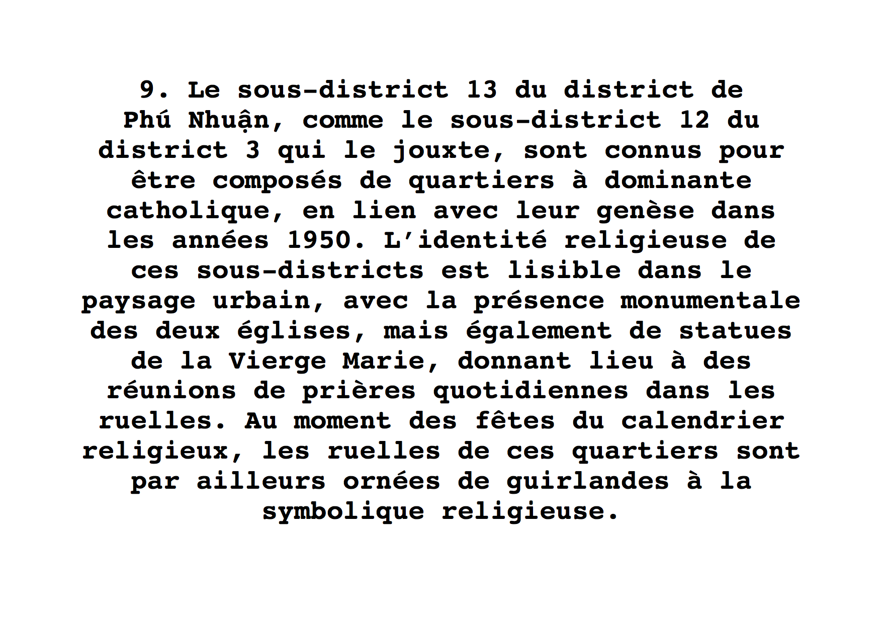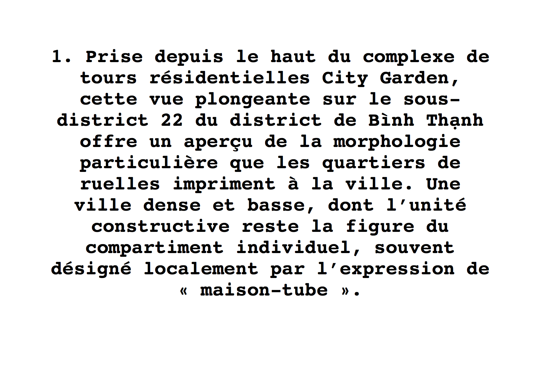 Cette série de photographies a été constituée entre janvier 2008 et juillet 2014, dans les districts péricentraux de Hồ Chí Minh Ville.