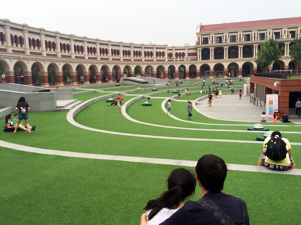 3. Le New I-Style Town de Tianjin. La place Marco Polo entièrement réaménagée en espace paysager touristique. L’importante présence des visiteurs montre le succès touristique du quartier (Lu, 2015).
