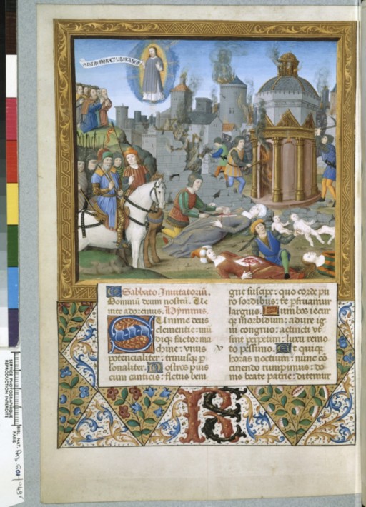 Sac et incendie d’une ville (Bréviaire de René II de Lorraine, Folio 49 verso, Manuscrit 601, BNF, collection du Marquis de Paulmy)