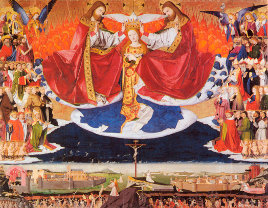 Enguerrand QUARTON, Le couronnement de la Vierge, 1454, Musée Pierre de Luxembourg, Villeneuve-lès-Avignon, Détrempe sur bois, 183 x 220 cm.