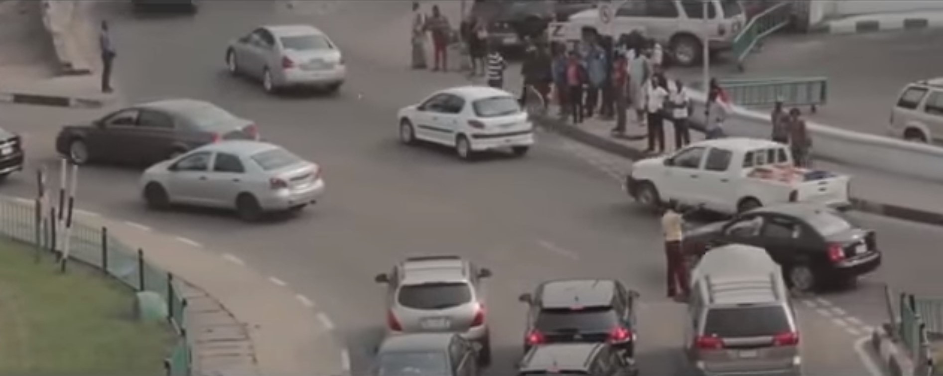 5. Les inégalités au prisme des mobilités : voitures récentes et privées face aux piétons attendant les taxis collectifs (Gidi Up, saison 1, 1’28’’, Ndani.tv, 2014)