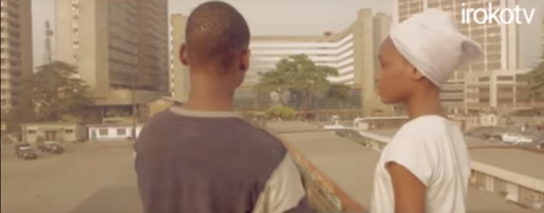 9. Deux adolescents issus du bidonville de Makoko contemplant le quartier d’affaires de Lagos Island (Getting rich in Lagos, 7’24 », IrokoTV, 2016)