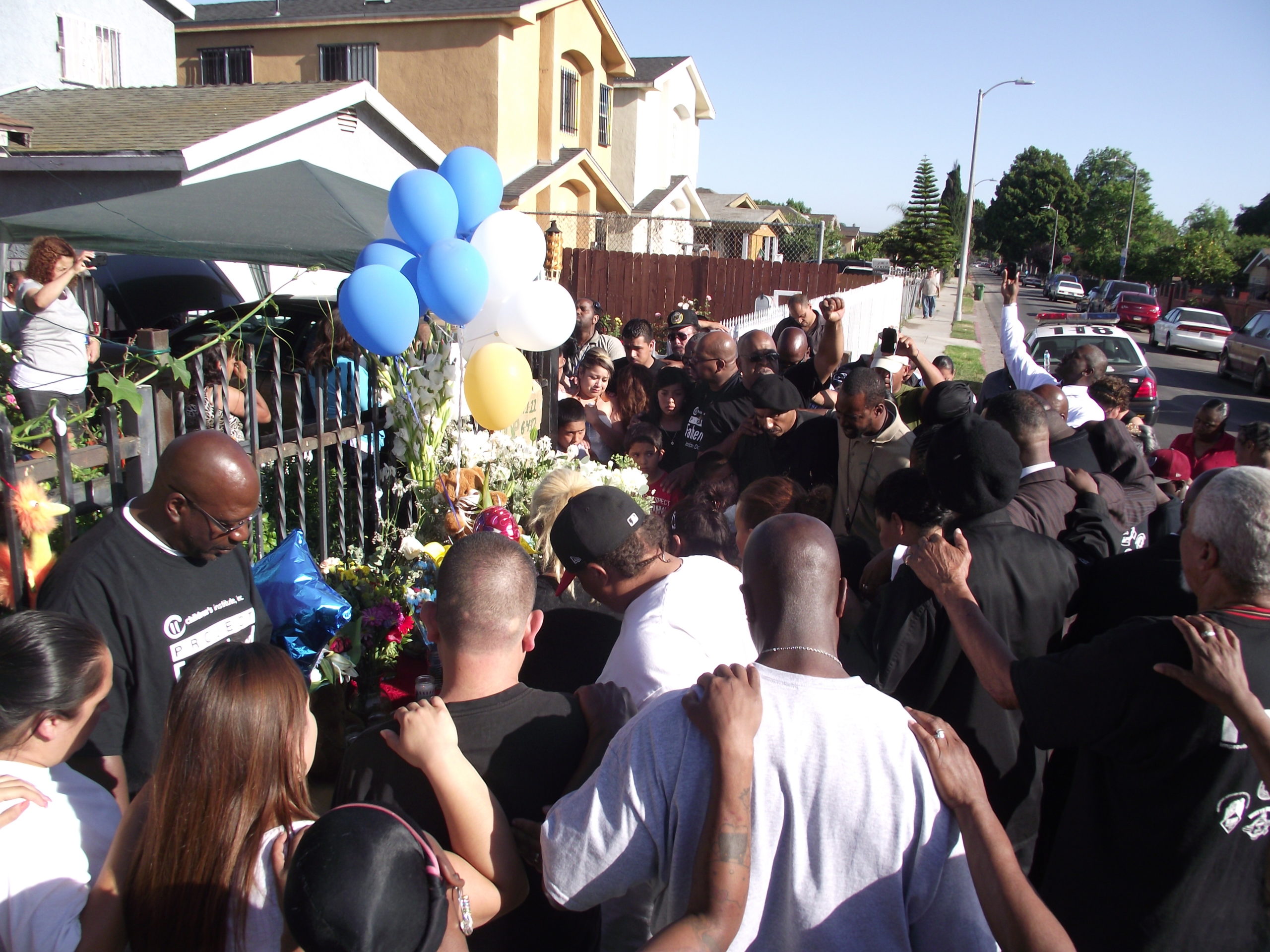 Face au spectre d’une flambée de violences entre Noirs et Latinos comme Los Angeles en a tant connu depuis le milieu des années 1990, une coalition d’intervention workers africains-américains (d’anciens membres de gangs reconvertis dans le travail social et œuvrant à la réduction des conflits entre gangs) appelle à se réunir le lendemain sur le lieu du meurtre pour rendre hommage à Angel et apporter son soutien à sa famille.