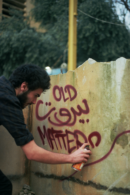 Kabrit tague Old Beirut Matters sur les ruines de la Grande Brasserie du Levant, icône d’avant-guerre détruite en 2017 au profit d’un projet architectural renforçant l’urbanisme sauvage et la paupérisation. Le plein jour, l’usage de l’arabe et de l’anglais, le béton impersonnel caché par une végétation rare, la résistance à la dépossession de l’espace et de son identité sont autant de signes singularisant cet art – et la société qu’il entend représenter.