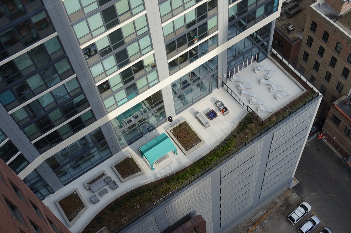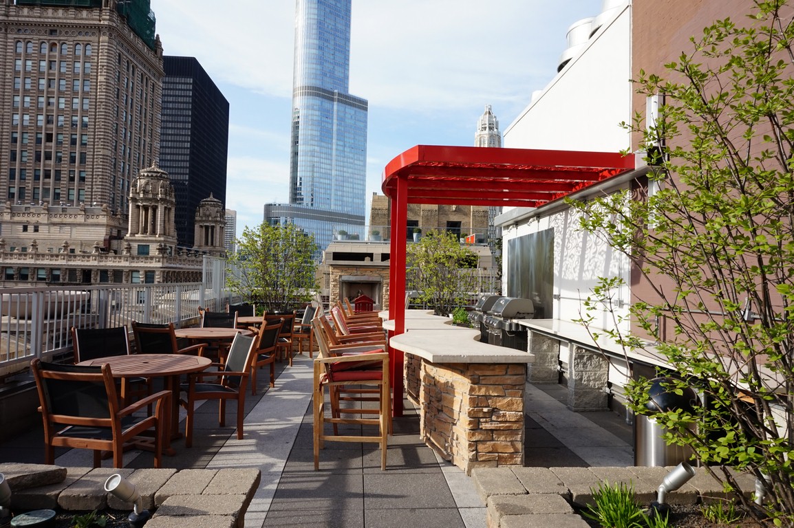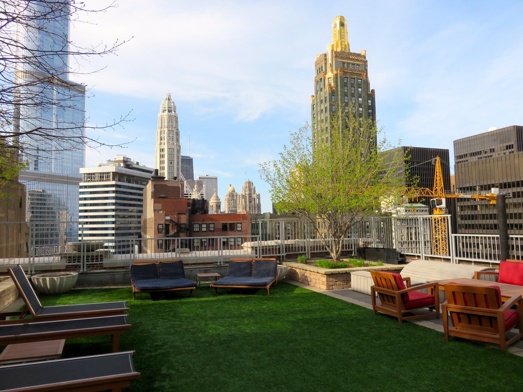 Le rooftop – qu’il soit végétalisé compte de façon secondaire, le plus important étant qu’un toit-terrasse (rooftop terrace) soit accessible – constitue un argument de vente mis en avant par les hôtels et les appartements de luxe de Chicago. Malgré sa relative banalisation depuis une dizaine d’années, il constitue toujours un argument marketing supérieur aux autres aménités incontournables telles que la piscine ou les équipements sportifs. Il demeure ainsi très largement un élément de distinction, pouvant contribuer par exemple à augmenter la cherté d’une nuit d’hôtel.