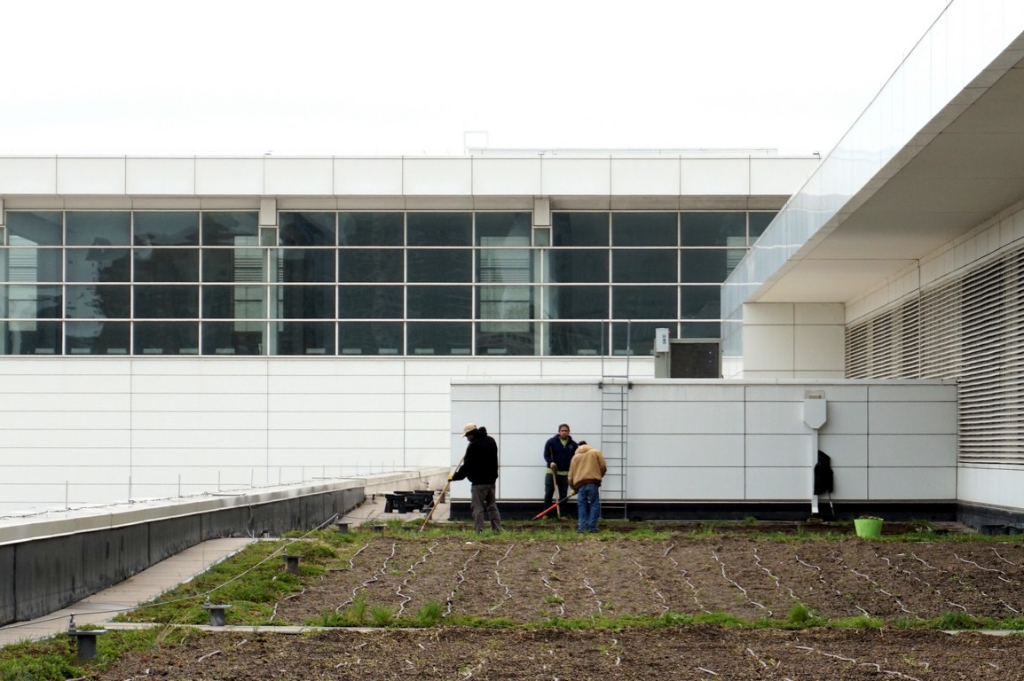 Photographie 3. Gallery 37 (Burgel, 2015). Extensive green roof : une couverture végétale permettant de réduire l’effet d’îlot de chaleur urbain tout en réduisant la consommation énergétique du bâtiment.